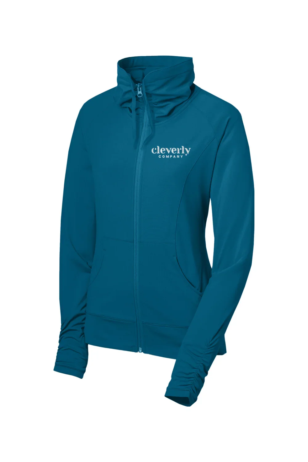 The Women’s Stretch Full Zip Jacket is a versatile performance layer designed for comfort and style. Made from a polyester and spandex jersey blend, it features moisture wicking fabric with a soft brushed backing for a smooth, comfortable feel. The zip through cowl collar with ruching adds a unique design element, while raglan sleeves and stretch construction allow ease of movement. Front pouch pockets provide everyday functionality, and the tag free label enhances comfort. Finished with an embroidered logo on the left chest for a clean, polished detail.